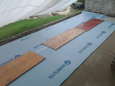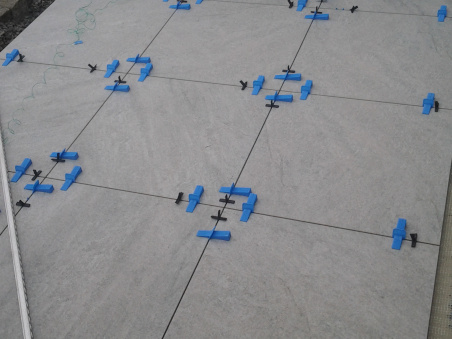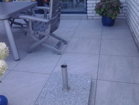 Großformatige Feinsteinzeugplatten auf Dünnschichtdraenage.